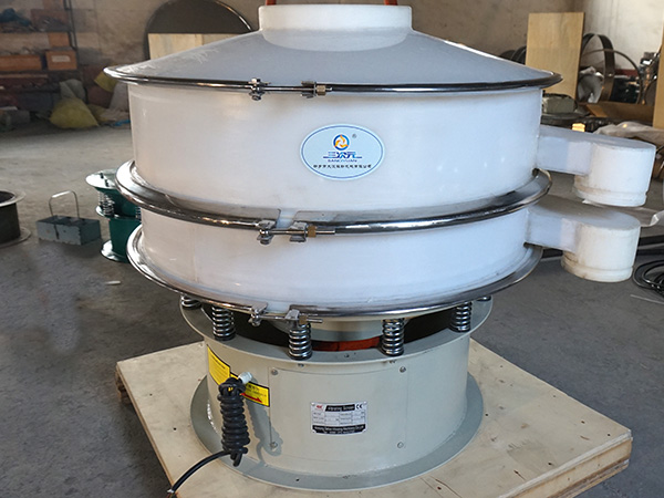 塑料振動(dòng)篩也叫聚丙烯振動(dòng)篩,塑料防腐蝕振動(dòng)篩或塑料旋振篩,主要是為了解決篩分物料與金屬接觸而產(chǎn)生化學(xué)反應(yīng)的問(wèn)題。塑料防腐蝕振動(dòng)篩從篩框、篩網(wǎng)和清網(wǎng)裝置采用非金屬材料,排除了一些特殊物料與金屬接觸會(huì)產(chǎn)生化學(xué)反應(yīng)的問(wèn)題。塑料振動(dòng)篩采用聚丙烯PP材料通過(guò)特殊加工制作的用于滿(mǎn)足具有酸堿性、腐蝕性物料的篩分作業(yè)。