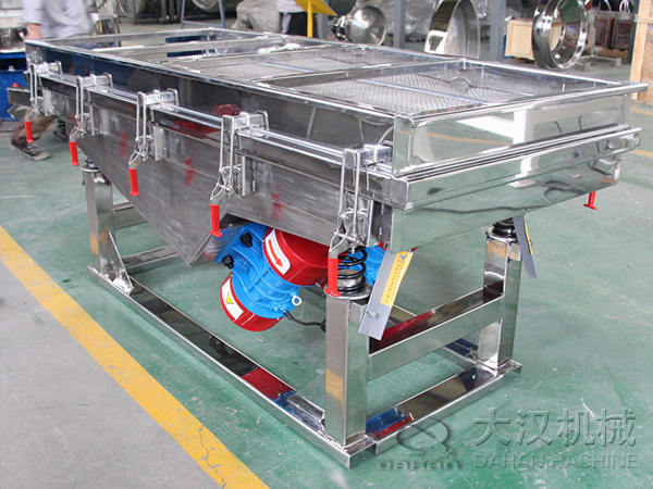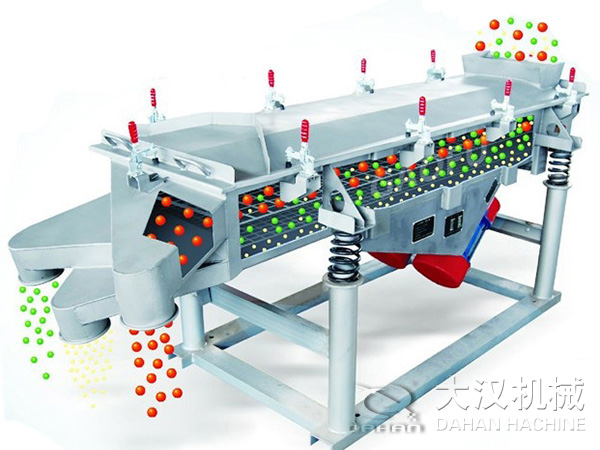 直線(xiàn)振動(dòng)篩,簡(jiǎn)稱(chēng)直線(xiàn)篩,是一種運(yùn)動(dòng)軌跡為直線(xiàn)的中、細(xì)物料篩分設(shè)備,廣泛用于選煤、選礦、電力、制糖、制鹽、化工、磨料、耐材、食品等行業(yè),對(duì)中、細(xì)粒度物料進(jìn)行干、濕式篩分或脫水、脫介、脫泥作業(yè)。直線(xiàn)振動(dòng)篩利用振動(dòng)電機(jī)激振作為振動(dòng)源,使物料在篩網(wǎng)上被拋起,同時(shí)向前作直線(xiàn)運(yùn)動(dòng),物料從給料機(jī)均勻地進(jìn)入篩分機(jī)的進(jìn)料口,通過(guò)多層篩網(wǎng)產(chǎn)生數(shù)種規(guī)格的篩上物、篩下物、分別從各自的出口排出。具有耗能低、產(chǎn)量高、結(jié)構(gòu)簡(jiǎn)單、易維修、全封閉結(jié)構(gòu),無(wú)粉塵溢散,自動(dòng)排料,更適合于流水線(xiàn)作業(yè)。