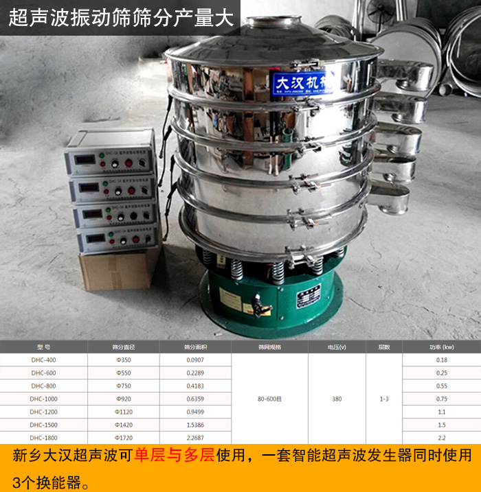新鄉(xiāng)大漢超聲波可單層與多層使用,一套智能超聲波發(fā)生器同時(shí)使用3個(gè)換能器,具備自潔功能,無(wú)網(wǎng)孔堵塞現(xiàn)象,對(duì)于一些難篩分的物料有著良好的篩分效果。
