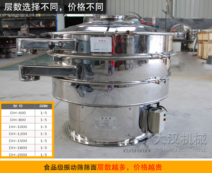 大漢機械推薦一款專門用于食品行業(yè)的振動篩,即食品振動篩,食品振動篩對衛(wèi)生標準要求比較嚴格,所以整機采用304不銹鋼材質。該設備干凈、衛(wèi)生、無死角,全部進行剖光處理,完全達到食品衛(wèi)生標準。新鄉(xiāng)大漢一臺食品振動篩價格在6000~15000元之間。但是不同型號、層數等不同,價格也會相應有所變化。