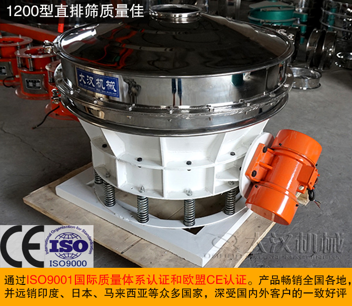 大漢1200型直排篩生產嚴格按照高標準執(zhí)行,該款設備通過ISO9001國際質量體系認證和歐盟CE認證。產品暢銷全國各地,并遠銷印度、日本、馬來西亞等眾多國家,深受國內外客戶的一致好評。