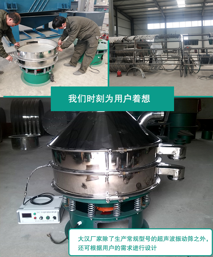 大漢廠家除了生產(chǎn)常規(guī)型號(hào)的超聲波振動(dòng)篩之外,還可根據(jù)用戶(hù)的需求進(jìn)行設(shè)計(jì),大化滿(mǎn)足用戶(hù)需求。