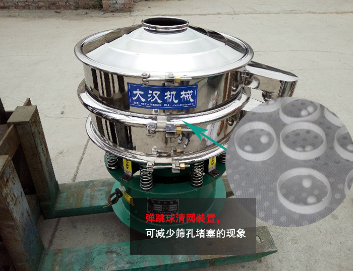 不銹鋼振動篩裝有彈跳球清網(wǎng)裝置,可減少篩孔堵塞的現(xiàn)象,提高研磨材料的篩分效果。