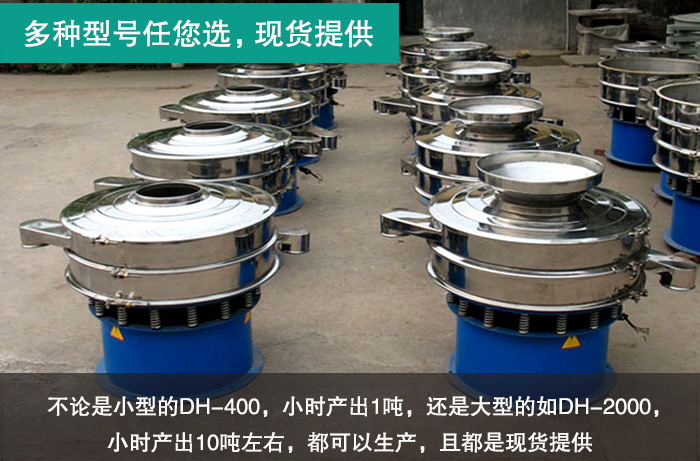 大漢廠家生產(chǎn)的金屬粉末振動篩型號非常齊全,不論是小型的DH-400,小時產(chǎn)出1噸,還是大型的如DH-2000,小時產(chǎn)出10噸左右。都可以生產(chǎn),且都是現(xiàn)貨提供。