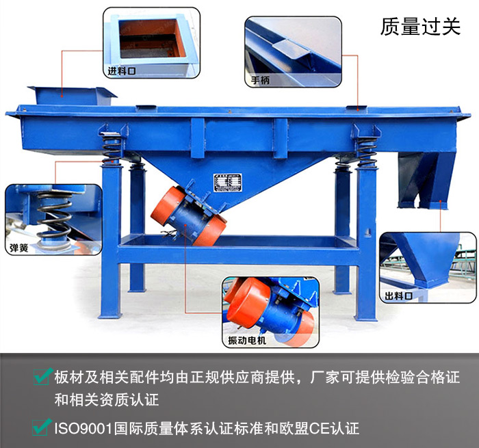 大漢廠家生產(chǎn)的葵花籽直線振動(dòng)篩均采用優(yōu)質(zhì)的耐磨材質(zhì),要比以往設(shè)備的使用壽命高于1.5倍,再加上廠家在葵花籽振動(dòng)篩生產(chǎn)流程上的嚴(yán)格化管理,由新鄉(xiāng)大漢生產(chǎn)的葵花籽直線振動(dòng)篩,其板材及相關(guān)配件均由正規(guī)供應(yīng)商提供,廠家可提供檢驗(yàn)合格證和相關(guān)資質(zhì)認(rèn)證!就目前而言,大漢葵花籽直線振動(dòng)篩已經(jīng)通過ISO9001國(guó)際質(zhì)量體系認(rèn)證標(biāo)準(zhǔn)和歐盟CE認(rèn)證,用戶可以放心購(gòu)買。