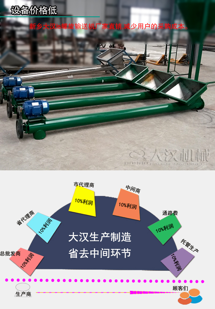 新鄉(xiāng)大漢ls螺旋輸送機廠家直銷,售出的每一臺設(shè)備都是直接面向我們的用戶,不存在中間商,可以在一定程度上減少用戶的采購成本。