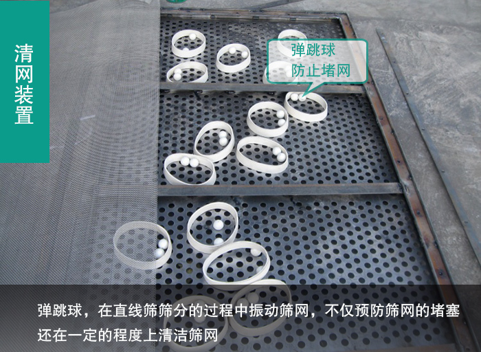 直線振動篩廠家為了防止篩網(wǎng)的堵塞,往往會在直線振動篩篩網(wǎng)上安裝彈跳球清網(wǎng)裝置,在直線篩篩分的過程中振動篩網(wǎng),不僅可以預(yù)防篩網(wǎng)的堵塞,還能在一定的程度上清潔篩網(wǎng)。但是小編在這里提醒大漢還需要注意平時的清潔工作。