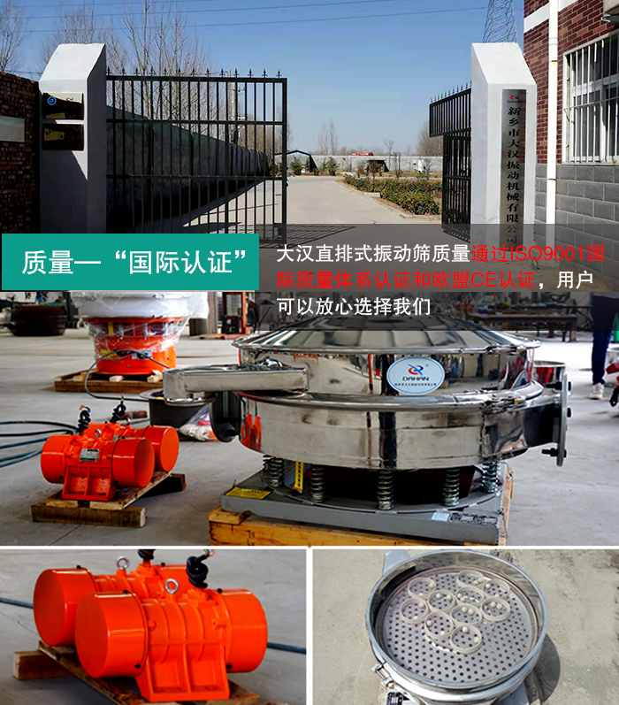 新鄉(xiāng)大漢公司歷經(jīng)20多年艱苦奮斗,建立了一支實(shí)力雄厚的研發(fā)團(tuán)隊(duì),不光在設(shè)備的設(shè)計(jì)及生產(chǎn)上區(qū)別于其他廠家,而且在設(shè)備的質(zhì)量方面更加出色,大漢直排式振動(dòng)篩質(zhì)量通過ISO9001國(guó)際質(zhì)量體系認(rèn)證和歐盟CE認(rèn)證,用戶可以放心選擇我們。