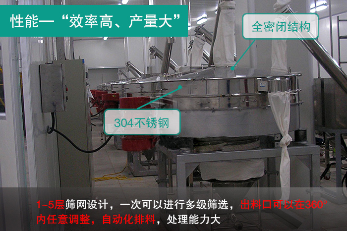 直排式振動(dòng)篩精選304不銹鋼材質(zhì),更加堅(jiān)固耐用,1~5層篩網(wǎng)設(shè)計(jì),一次可以進(jìn)行多級(jí)篩選,出料口可以在360°內(nèi)任意調(diào)整,自動(dòng)化排料,處理能力大。還采用了采用全密閉結(jié)構(gòu),可保證物料篩分過程中的篩分效率。