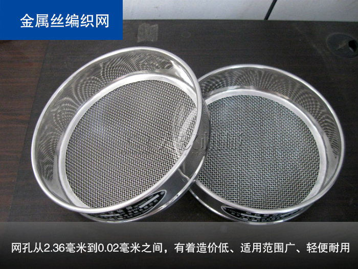 金屬絲編織網(wǎng)是由一定粗細(xì)的金屬絲縱橫編織而成的方形篩孔的篩網(wǎng),網(wǎng)孔從2.36毫米到0.02毫米之間,有著造價(jià)低、適用范圍廣、輕便耐用的特點(diǎn),常用在粉末物料或者小顆粒物料篩分的諸如超聲波振動(dòng)篩、旋振篩類的輕型篩分設(shè)備上。