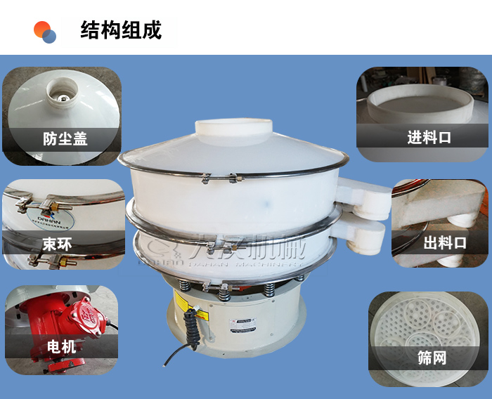塑料振動篩也叫聚丙烯振動篩,主要是為了解決物料與金屬接觸,產(chǎn)生化學(xué)反應(yīng)的問題。塑料振動篩裝置完全采用非金屬材料,完全排除了一些特殊物料與金屬篩體接觸會產(chǎn)生化學(xué)反應(yīng),從而腐蝕篩機(jī)的情況。