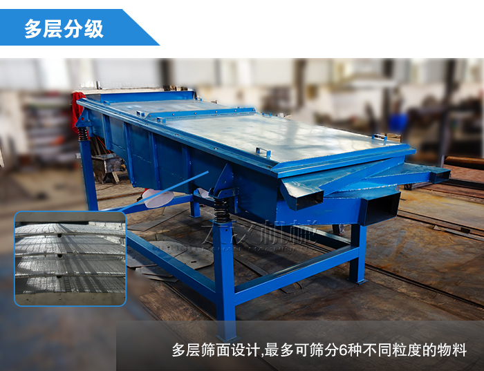 不同用戶對屬于棕剛玉篩分的粒度要求是不一樣的,所以一般需要使用多層篩面設(shè)計的直線振動篩,通過不同的篩面和篩孔尺寸來控制物料的篩分精度,大漢棕剛玉直線振動篩可以多篩分6種不同粒度的物料,篩分目數(shù)一般在400目以內(nèi),篩分層數(shù)越高,物料的粒度等級就越多,但是小編在這里建議大家盡量選擇層數(shù)不超過4層的直線振動篩,因為隨著篩面層數(shù)的增加,設(shè)備的篩分效果就會隨之下降。