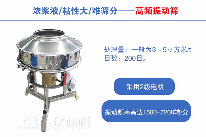 像油漆這種粘稠的物料,使用一般振動篩可能會造成堵網、黏網現象,而高頻振動篩的高頻振動正好可以解決這一問題。高頻振動篩采用2級電機,振動頻率高達1500-7200轉/分,是一般機械振動篩振動強度的2~3倍,使得涂料在篩面上產生高速振動,可以加快物料之間的分離,加速了大密度(比重)有用礦物的析離。
