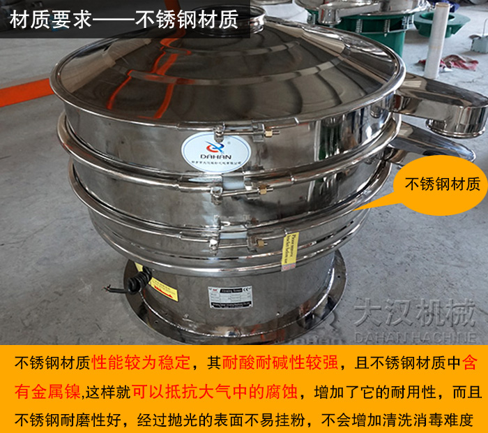 食品行業(yè)的振動(dòng)篩的篩機(jī)材質(zhì)必須使用優(yōu)質(zhì)不銹鋼材質(zhì),因?yàn)椴讳P鋼材質(zhì)性能較為穩(wěn)定,其耐酸耐堿性較強(qiáng),且不銹鋼材質(zhì)中含有金屬鎳,這樣就可以抵抗大氣中的腐蝕,增加了它的耐用性,而且不銹鋼耐磨性好,經(jīng)過(guò)拋光的表面不易掛粉,不會(huì)增加清洗消毒難度。因此篩分食品行業(yè)物料,通常需要不銹鋼材質(zhì)。