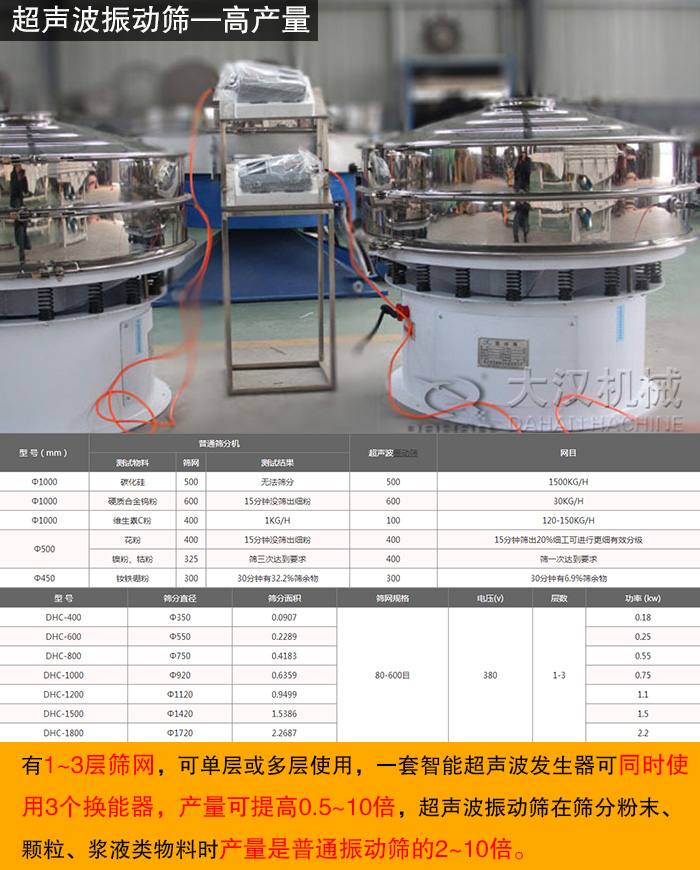 以上是關于胡椒粉篩分設備的介紹,新鄉(xiāng)大漢超聲波振動篩廠家直銷,一手貨源,沒有差價,型號齊全,接受用戶定制,用戶可隨時進行在線咨詢,還可以直接到廠實地考察、免費進行試機。