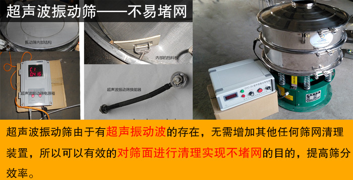 超聲波振動篩由于有超聲振動波的存在,無需增加其他篩網(wǎng)清理裝置,所以可以有效的對篩面進行清理實現(xiàn)不堵網(wǎng)的目的,提高篩分效率。