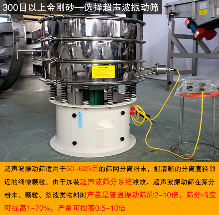 對于300目以上特別細(xì)的金剛砂微粉來說,可以選擇超聲波振動篩。