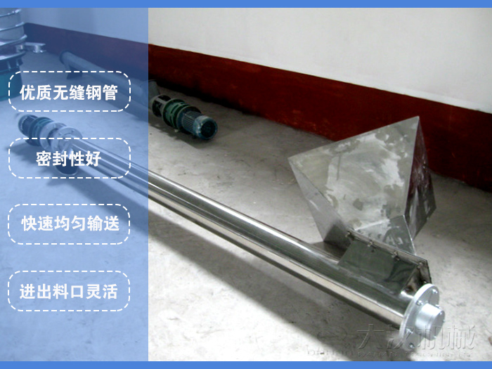 1、螺旋輸送機(jī)外殼采用優(yōu)質(zhì)無(wú)縫鋼管,通過(guò)法蘭將各段連接為整體,可直接與配套設(shè)備連接固定,無(wú)需地基基礎(chǔ);